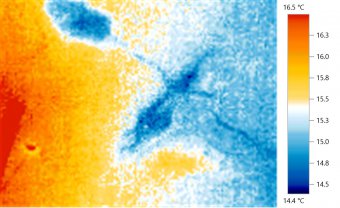 サーモグラフィーで確認すると、ハッキリと水が来ていることがわかります。