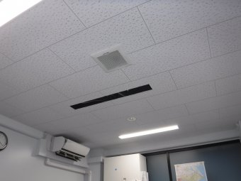 事務所の天井から発生した雨漏りです。