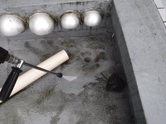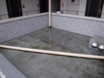 これで、排水口廻りの亀裂が、今回の雨漏りの原因の一つだということがわかりました。調査は、このように行っていきます。雨漏りにお困りのお客様は、まずは弊社にご相談ください。サーモグラフィー調査、ファイバースコープ調査で雨漏りの原因を突き止めます。