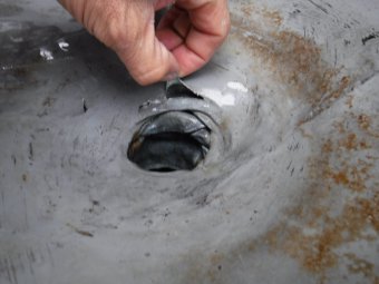 雨漏り個所とも近い排水廻りを確認してみると、排水ドレンの周りが若干浮いているように感じます。
