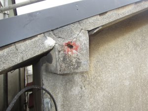 外的要因(衝撃など)・内的要因(腐食など)によって、コンクリートに穴(ピンホール)が開いたり、欠けたりするといった、欠損が起きることがあります。