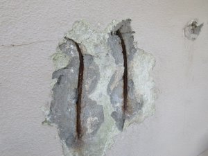 コンクリート内部の鉄筋は、腐食すると、最大2.5倍程度も体積が膨張します。その結果として、コンクリートを押し出して破裂してしまいます。