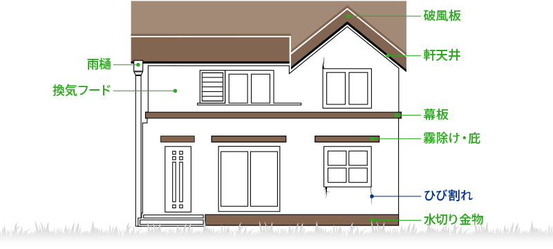 外壁以外(雨樋など)の各パーツの塗装のことです。