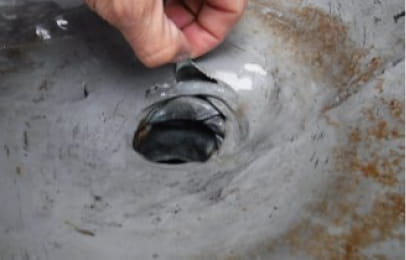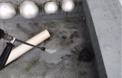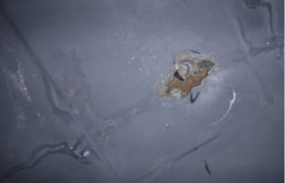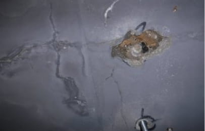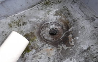 これで、排水口廻りの亀裂が、今回の雨漏りの原因の一つだということがわかりました。調査は、このように行っていきます。雨漏りにお困りのお客様は、まずは弊社にご相談ください。サーモグラフィー調査、ファイバースコープ調査で雨漏りの原因を突き止めます。