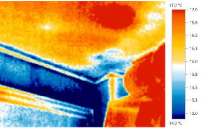 雨漏りが発生している状況、又は発生している可能性がある状況の時に、室内よりサーモグラフィーによる調査で雨漏り発生箇所を特定します。