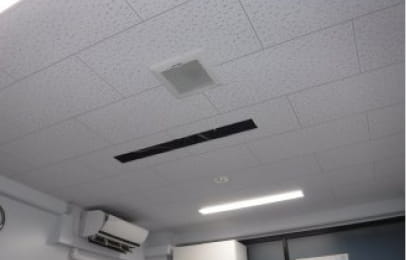 事務所の天井から発生した雨漏りです。