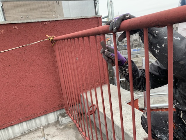 定期的な手摺の塗装で腐食を遅らせろ!!足立区竹の塚の屋上手すりの仕上げ塗装