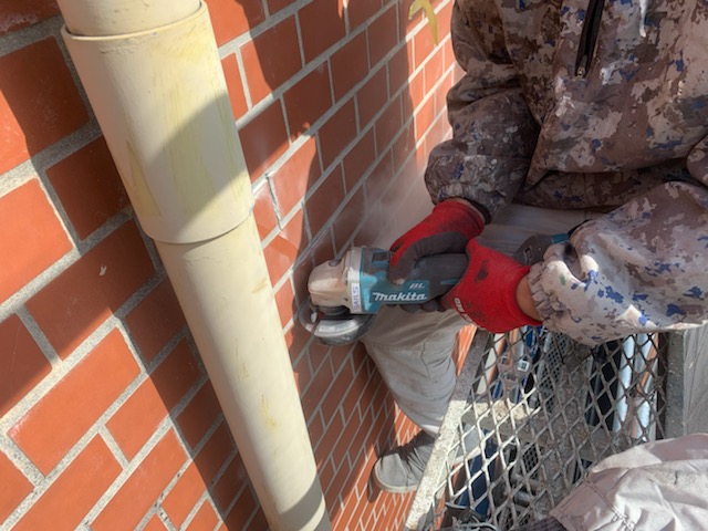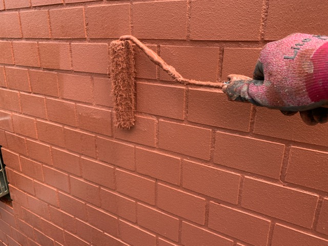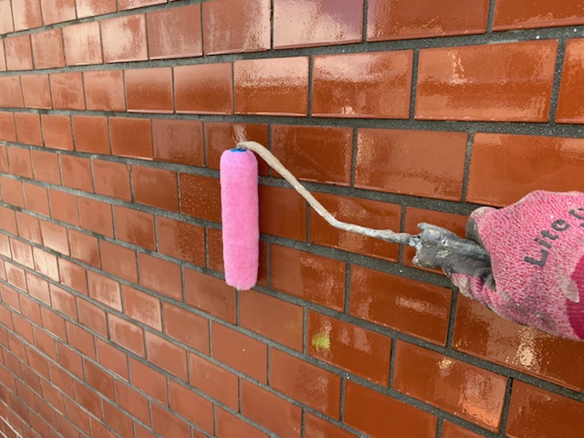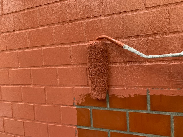 その際目地にも塗料がしっかりと入っていることを確認しながら塗装を進めていきます。