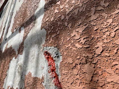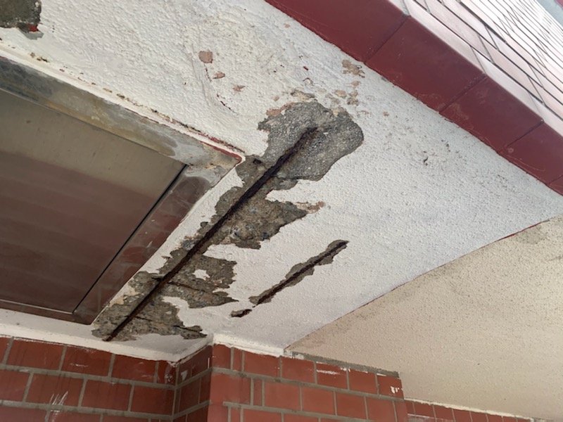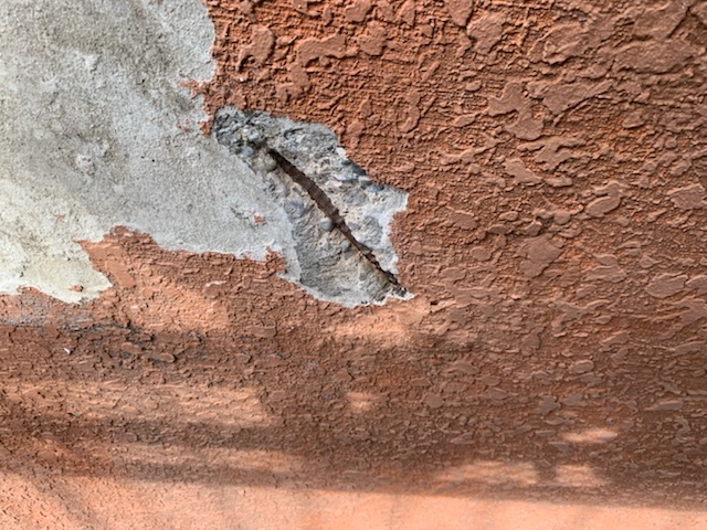 爆裂は下地の鉄筋が腐食して膨張し、モルタルを破裂させてしまう状態です。