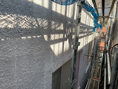 隣地との隙間が狭く、これまで外壁の改修工事をなかなかできず劣化してもそのままの状態だった外壁