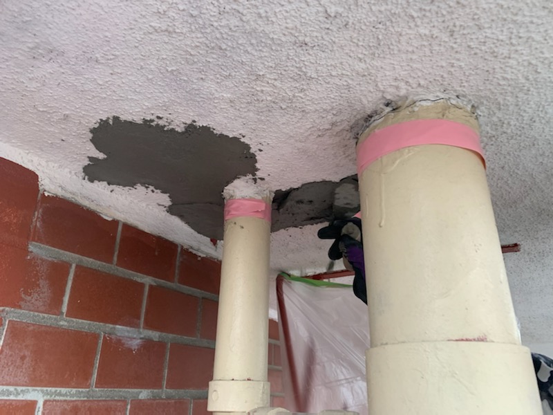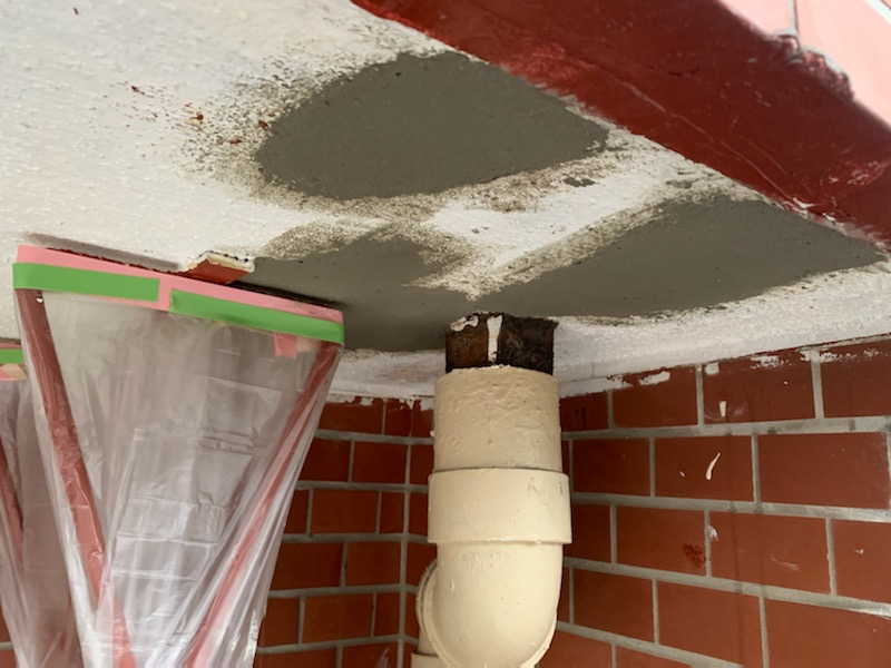 爆裂補修のモルタル形成 モルタル2度付けで天井形成