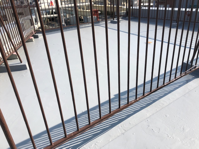 足立区竹の塚の屋上手すり塗装の仕上げ作業です。