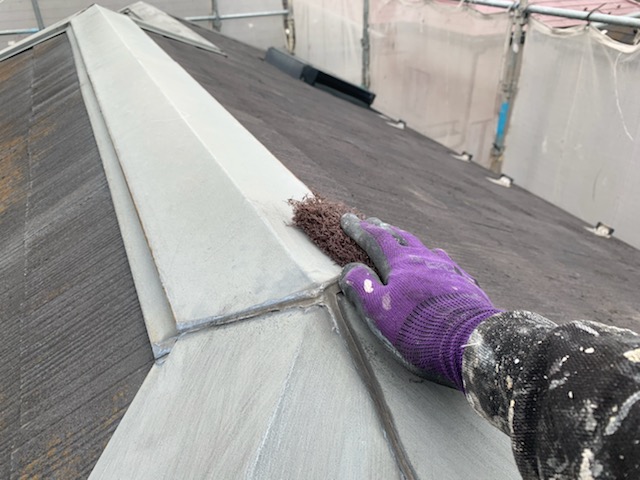 ケレンをし、錆止めを塗布して今後の腐食を抑えます。