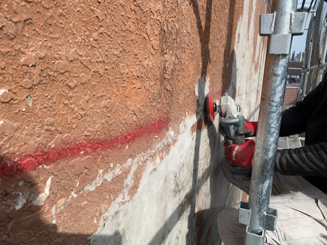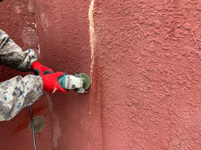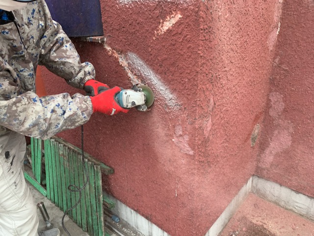 今回は劣化した外壁の爆裂と塗膜が浮いている箇所を撤去していきます。