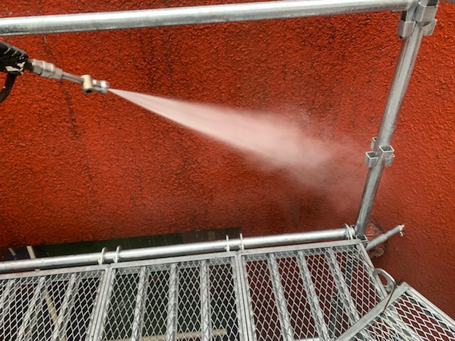 高圧洗浄でしっかりと汚れが落ちているのがよくわかります。