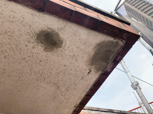 爆裂は下地の鉄筋が腐食し、膨張してしまう事で表面のモルタルを押し破ってしまう事で発生する下地の不良です。