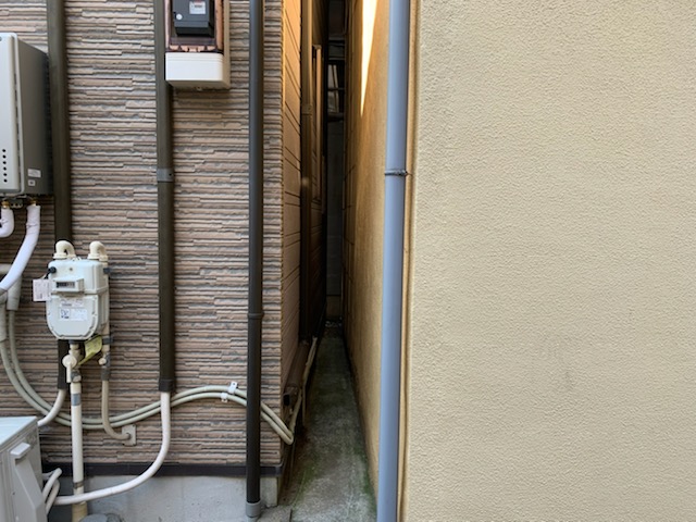 セイルズにお問い合わせを頂きました経緯は外壁塗装をするにあたり隣地とのスペースが狭い箇所が2面ありまして、全ての業者様に狭い部分の塗装はできませんとお断りされてしまったそうです。