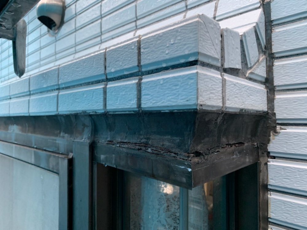 サッシのシーリング廻りは下地の鉄部が腐食してシーリングを破断させておりました。
