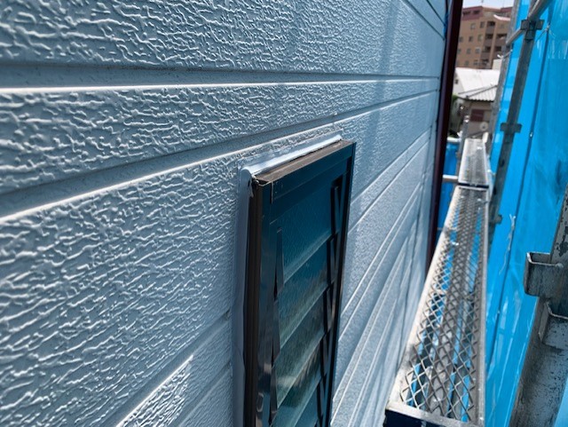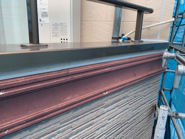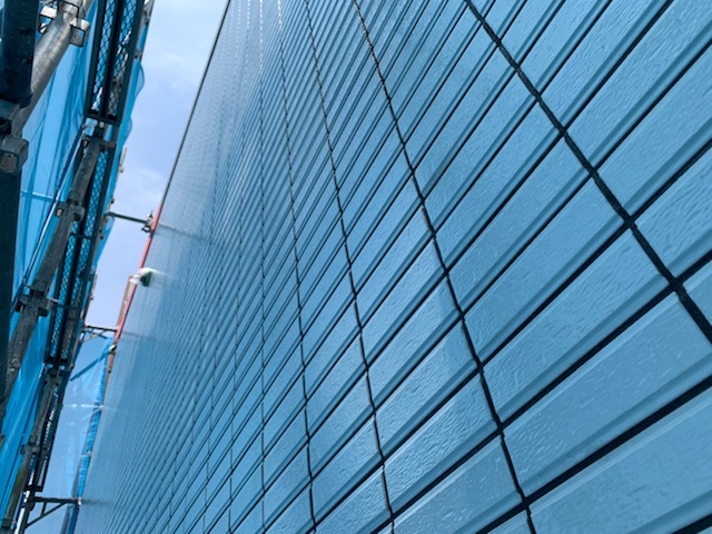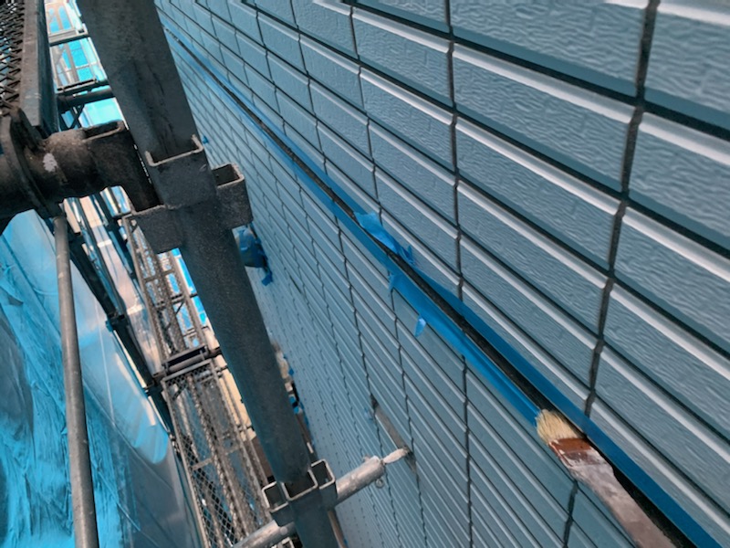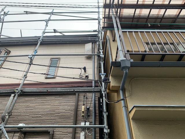 隣地と接している部分は足場があると通ることもできませんので、その部分は足場を解体後に塗装をしていきます。