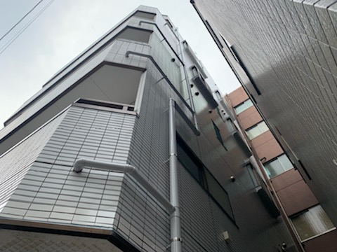 隣地とのスペースが狭くて足場を断られてしまった。/台東区根岸の外壁塗装工事が始まりました。