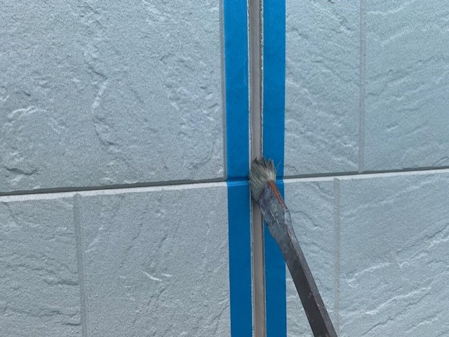 マスキングテープで養生後に密着を良くするためにプライマーを塗布していきます。