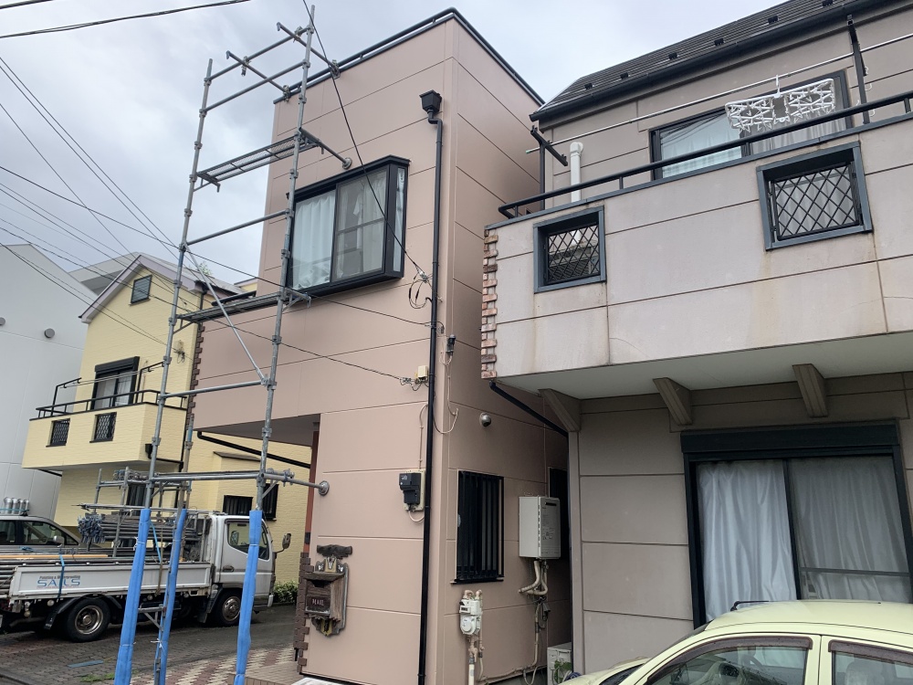 両側面の外壁のみを塗装していきますので、足場も面ごとに架設していきます。