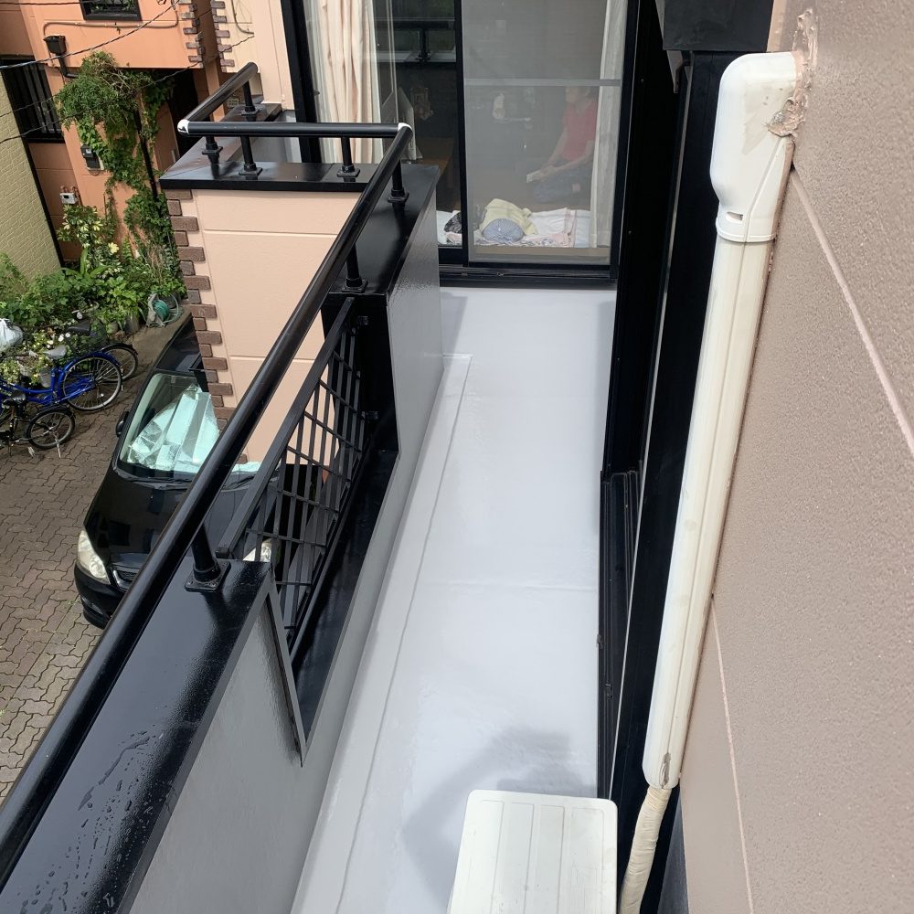 墨田区堤通の現場は外壁塗装は完了し、残すところベランダの防水工事になります。