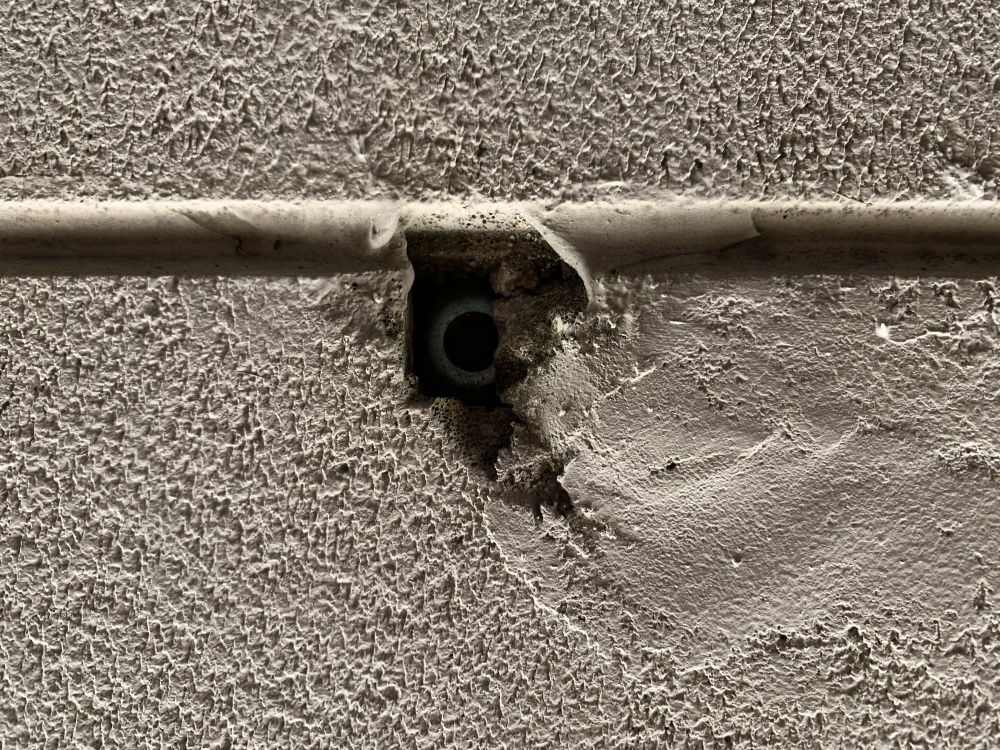 解体の時にシートを剥がしたらお隣さんの外壁に穴があいているのを見つけました。