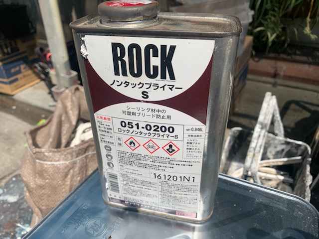もう打ってしまったシーリングを剥がしきることは難しいので表面に特殊なプライマーを塗布することで可塑剤を抑えていきます。