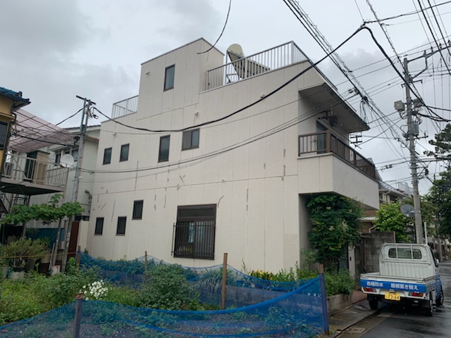 隣地とのスペースが狭く今まで施工ができなかった足立区千住の外壁塗装工事