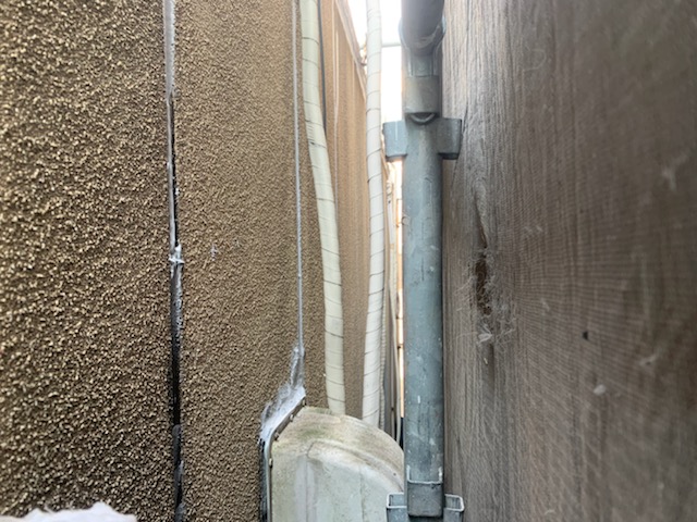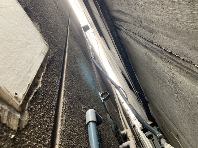 狭小面は25㎝ほどで外壁も手つかずの状態ですのでかなり劣化しております。