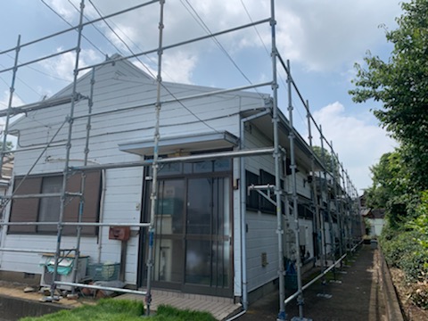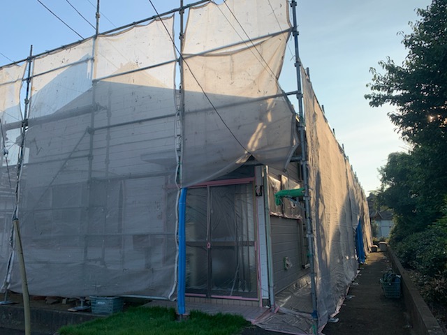 しっかりと改修していけるよう本日は足場を架設していきます。