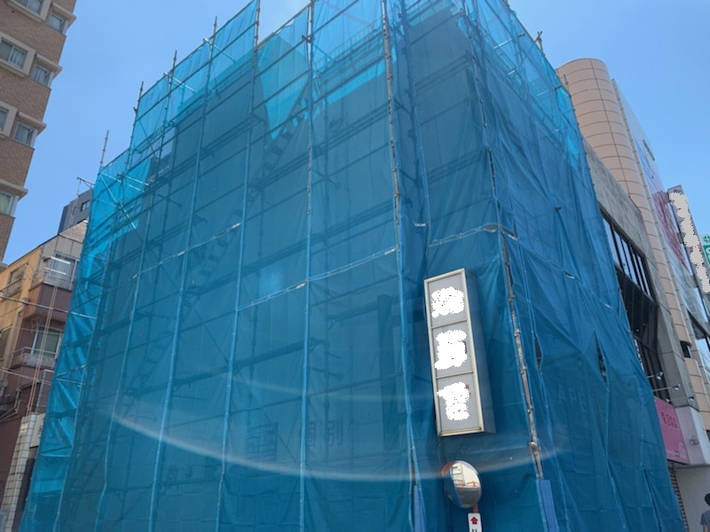 最後に飛散防止用のメッシュシートを張って足場の架設完了です。