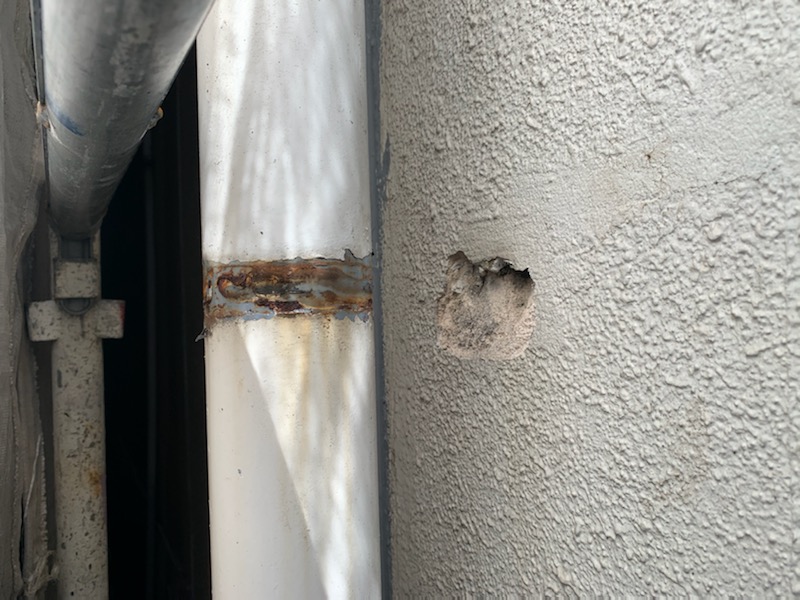 雨水管のバンドがスチール(鉄)製の場合に発生してしまう錆