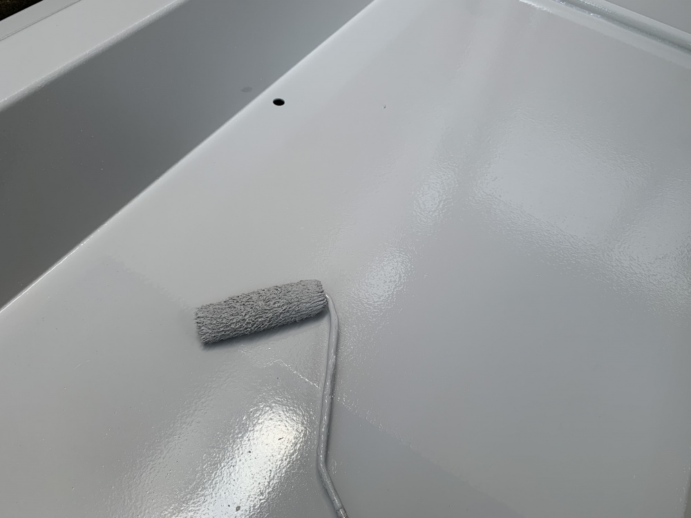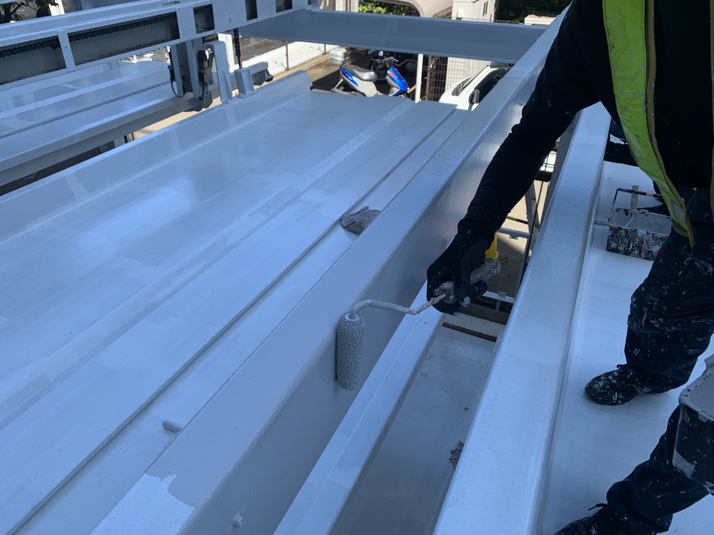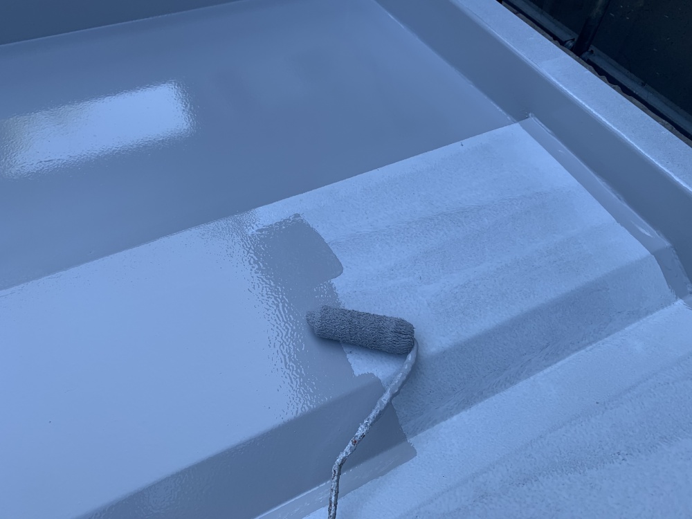 今回は摩耗に強く、速乾性のエスケー 化研のミラクガードを使用しての塗装になります。
