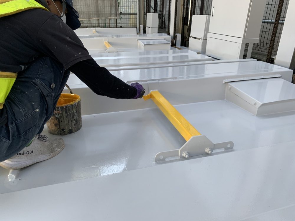 全68台の塗装工事になりますので4区画に分けての塗装になり、今回は2区画目の14台を塗装していきます。