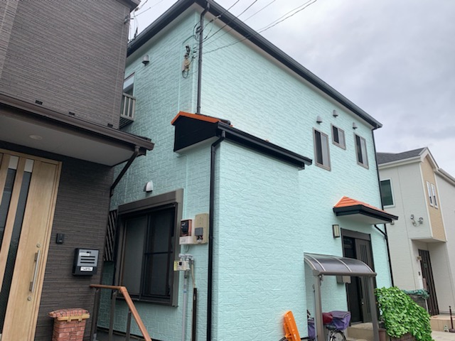 さわやかなミントブルーの明るい外壁に仕上がりました。