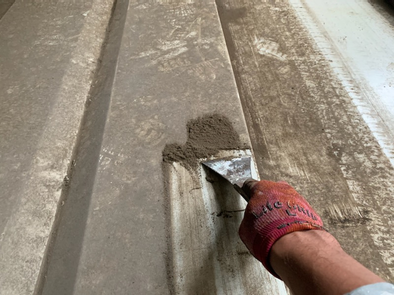 2回目の塗装の前に1回目の塗装時に飛んできて付着してしまったゴミや砂などを撤去してから最後の塗装を進めていきます。
