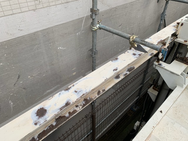 今週はお天気が不安定ですので合間をみて施工を進めていかなければならないかもしれませんが、乾燥が早い錆止め塗料ですので、何とか進めていくことができました。