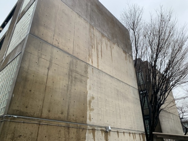 打ちっ放しのコンクリート外壁は劣化してくるとひび割れやシーリングには破断がおきてきて雨水の侵入の恐れがあります。