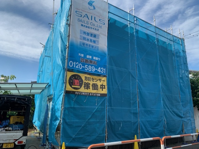 足立区加賀の外壁塗装工事が始まりました。