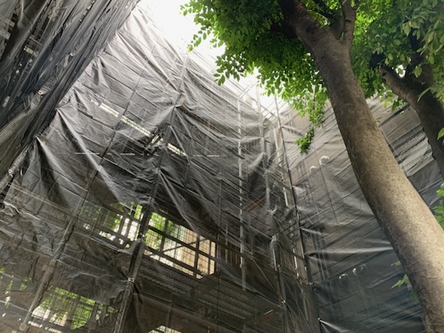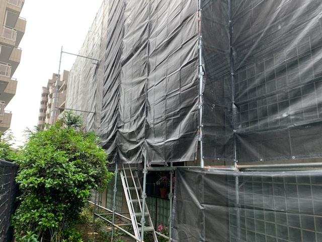 打ちっ放しコンクリート外壁の塗装工事!世田谷区桜丘で集合住宅の改修工事が始まります。