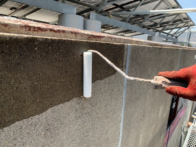 下地の爆裂が発生してしまっている部分は腐食している鉄筋に錆止めを塗布してモルタルで補修します。