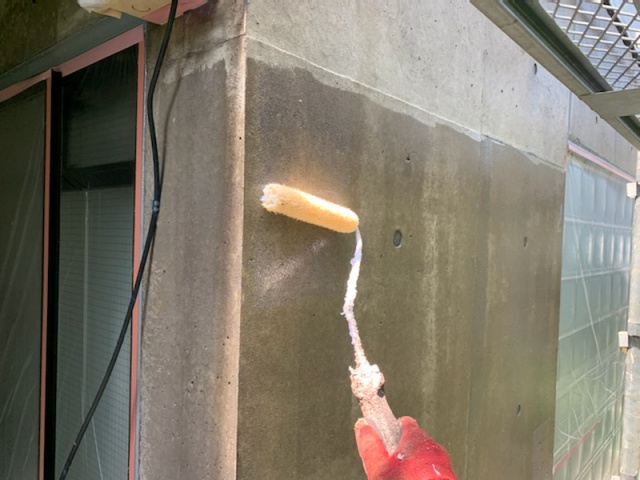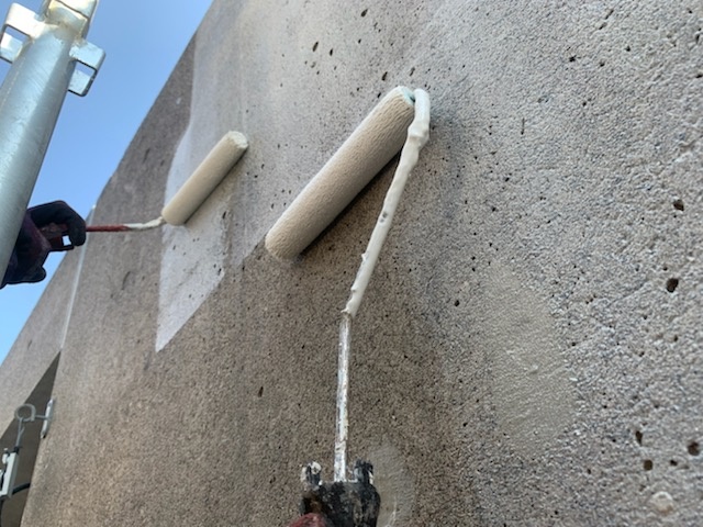 次に粘度が高めのアクリルシリコン樹脂系のコーティング材でコンクリを保護します。