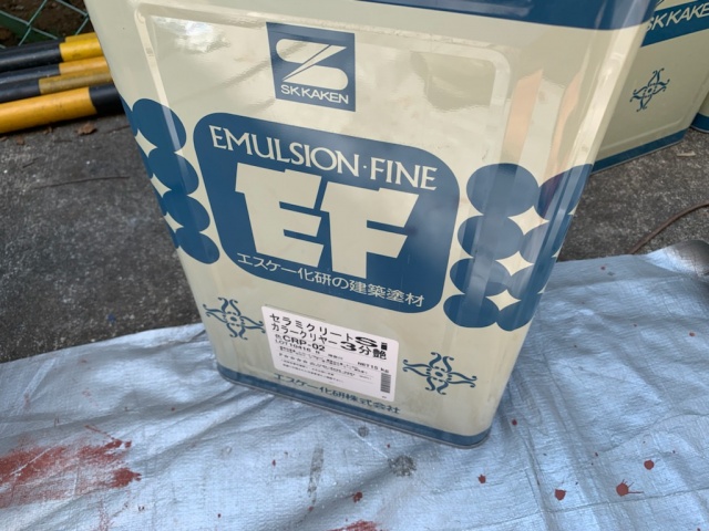 無色のクリヤーもありますが、今回の外壁は劣化が進行して、染みついてしまった汚れもあり村がありましたので、若干白っぽい色がつくクリヤー塗装で施工しました。