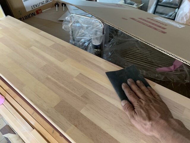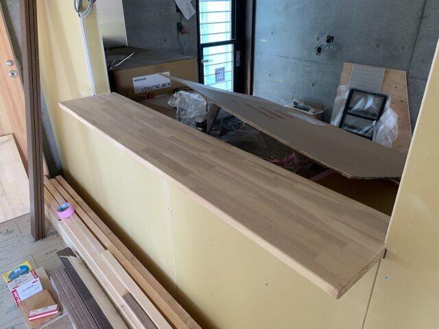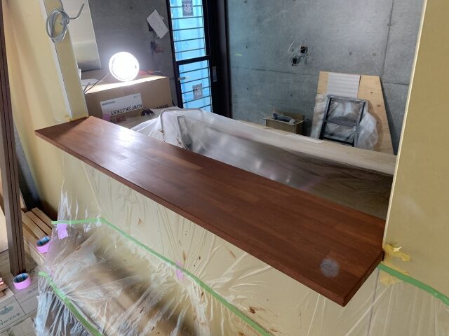 新築のキッチンカウンターの染色塗装/世田谷区成城