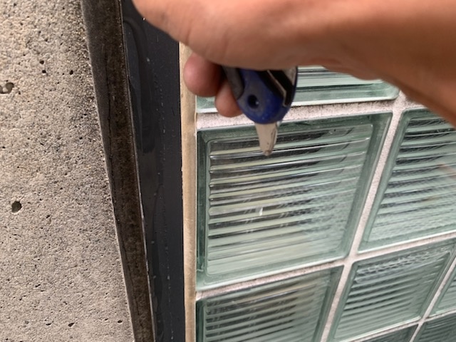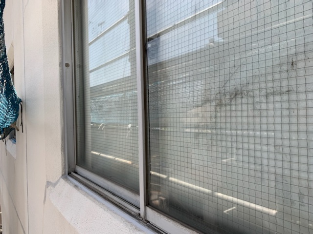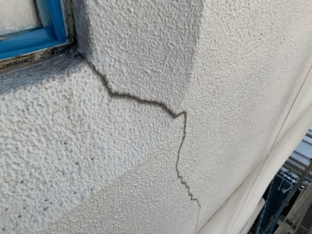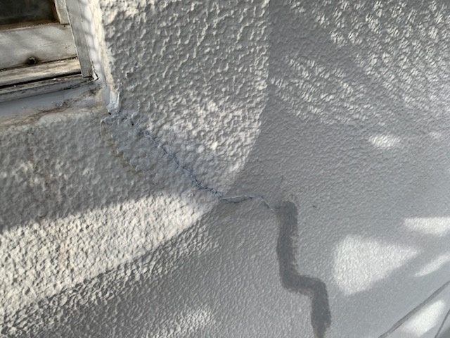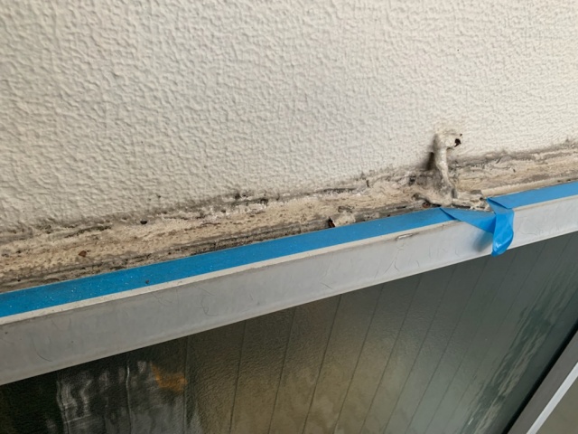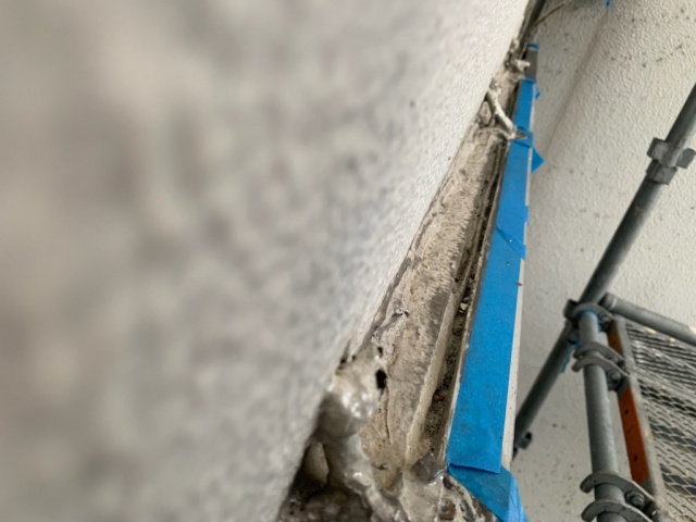 クラックや破断の処理はエポキシ樹脂を注入するのとUカットをして処理をしていく予定ですが、雨水の侵入が懸念されるサッシ廻りのクラックはシーリングを充填しております。