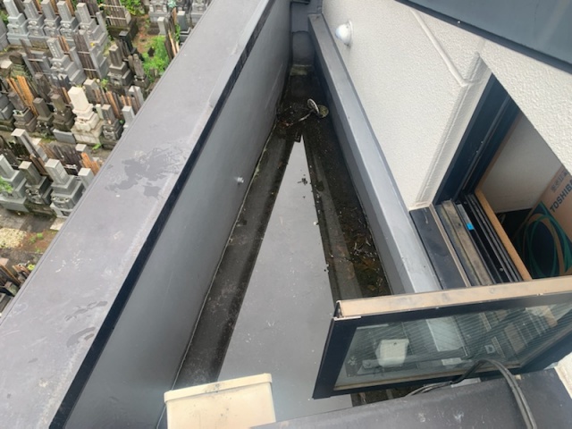 屋上の排水は大丈夫ですか??落ち葉やゴミが詰まって雨漏りする危険があります。定期清掃をお勧めします。