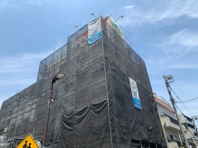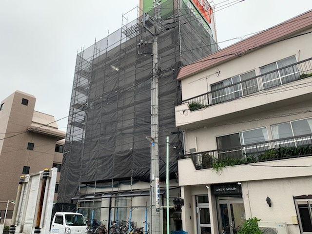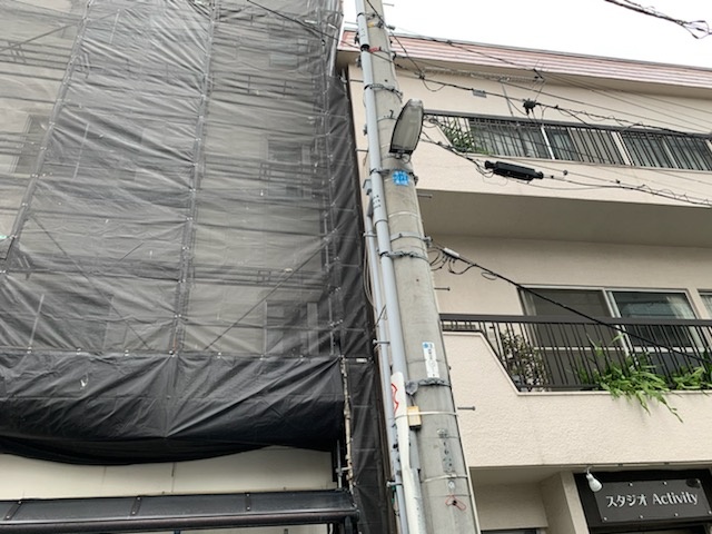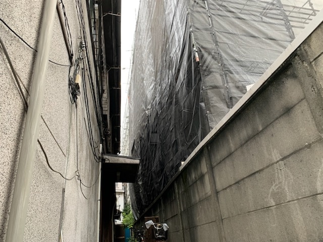 狭小面の架設も近隣様のご協力のもと無事に架設が完了しております。