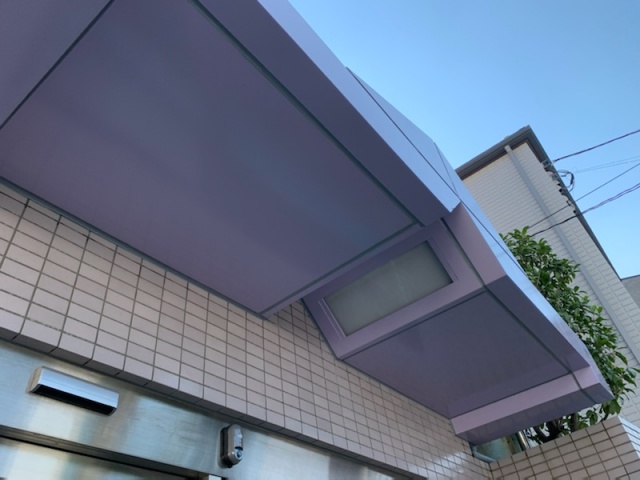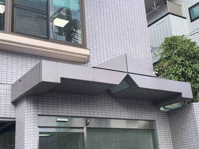 今回施工させていただきますのは大田区の整形外科の入り口にある庇の防水と塗装になります。